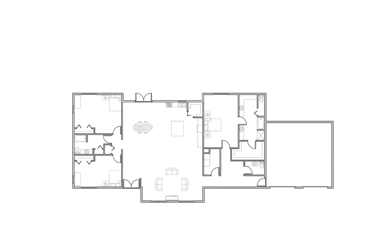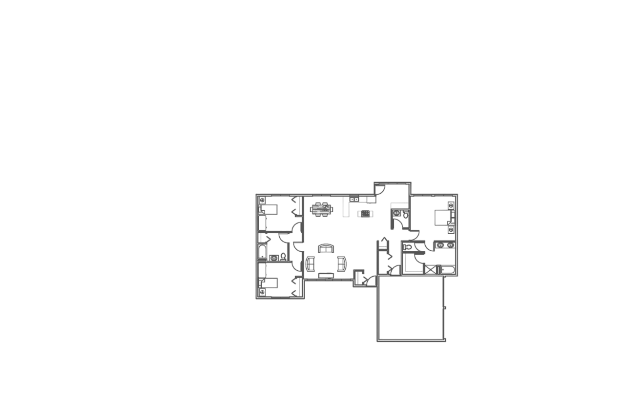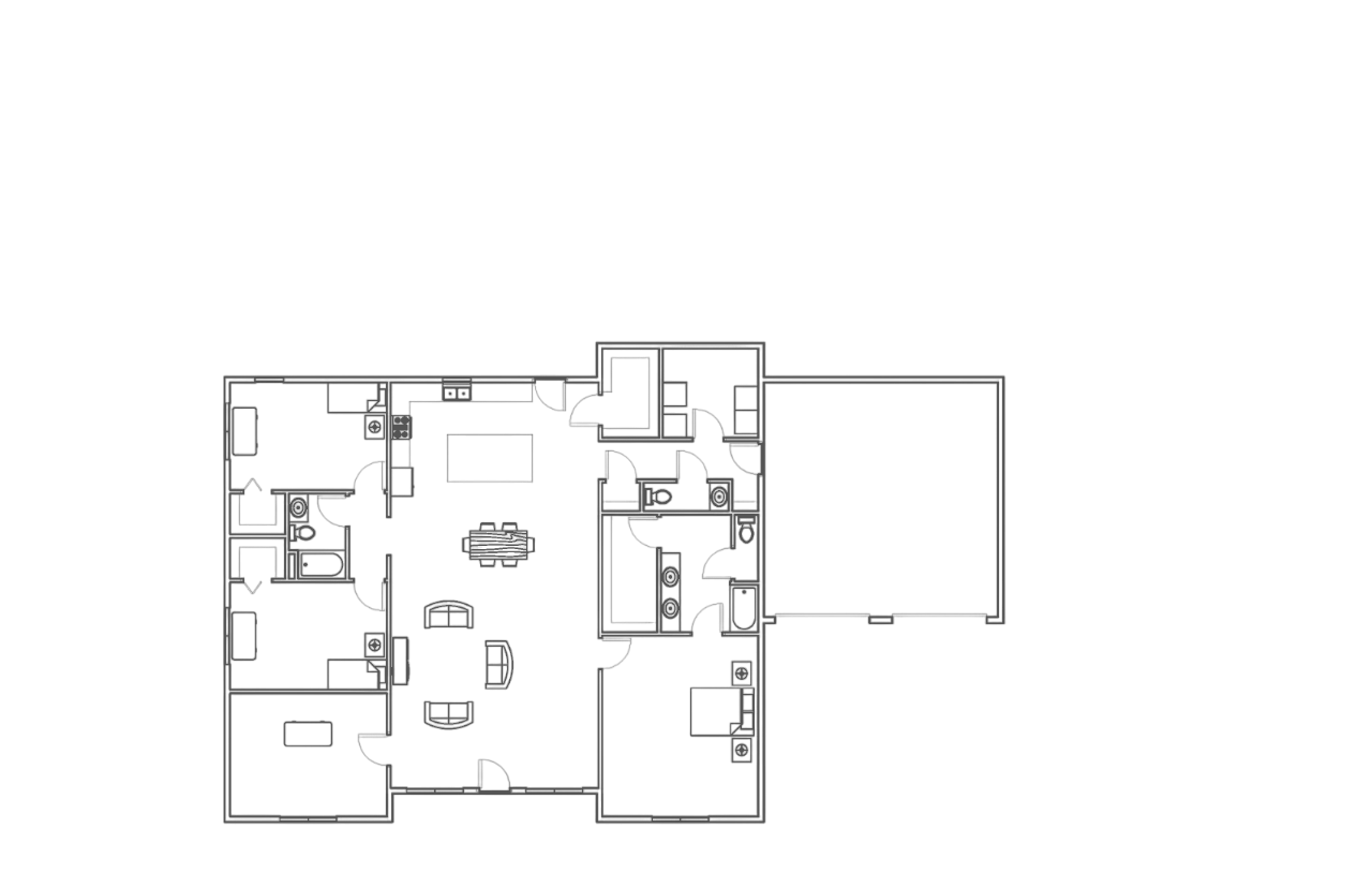 The 2,300 square foot, ranch-style Oakwood Haven is a masterclass in spacious and open living, designed to offer an expansive and inviting atmosphere. Its open floor plan effortlessly combines the living, dining, and kitchen areas, creating a seamless flow that enhances both functionality and comfort. High ceilings and large windows flood the interior with natural light, accentuating the home's generous proportions and creating a bright, airy environment. The design prioritizes connectivity, ensuring that every room feels part of a cohesive whole, while the thoughtfully arranged layout provides distinct zones for relaxation and socializing. The private bedrooms and luxurious master suite offer tranquil retreats, perfectly balanced by the open, welcoming common areas. The Oakwood Haven exemplifies a refined yet practical approach to living, combining elegance with a sense of spaciousness that makes it an ideal haven for contemporary lifestyles.